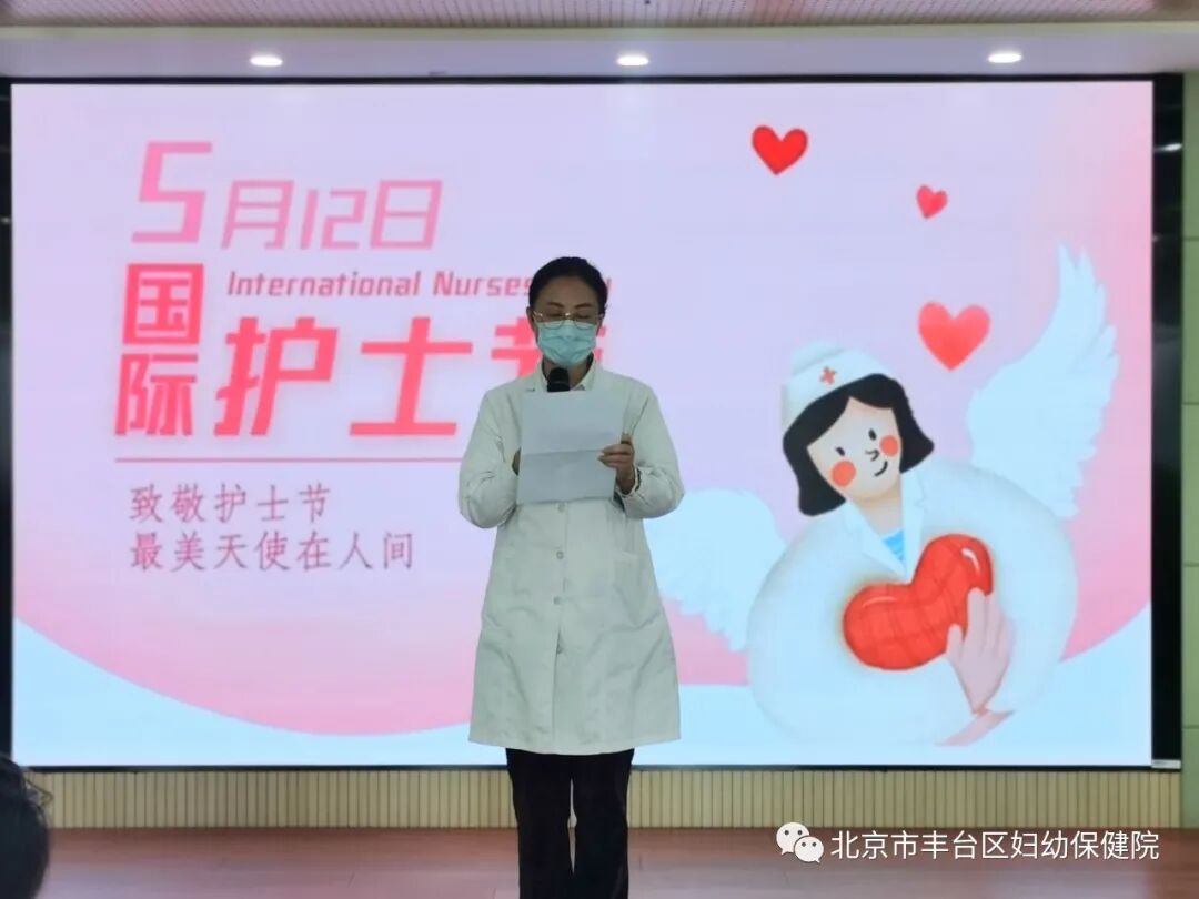 5月12日下午,丰台区妇幼保健院举行了纪念“5.12”国际护士节暨护理表彰大会。院领导班子、护理部主任与院内护理姐妹们欢聚一堂,共庆第110个国际护士节。会议由宣传科孙婷婷主持。