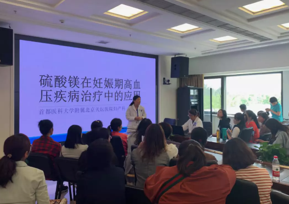 现场模拟演练结束后,高婉丽主任向参培人员详细讲解了可逆性后部脑病综合征(RPLS)相关知识,进行病例分享。随后,由王歆莉和梁竹巍副主任医师分别就妊娠期高血压药物降压的应用和硫酸镁在妊娠期高血压疾病治疗中的应用进行讲解。
